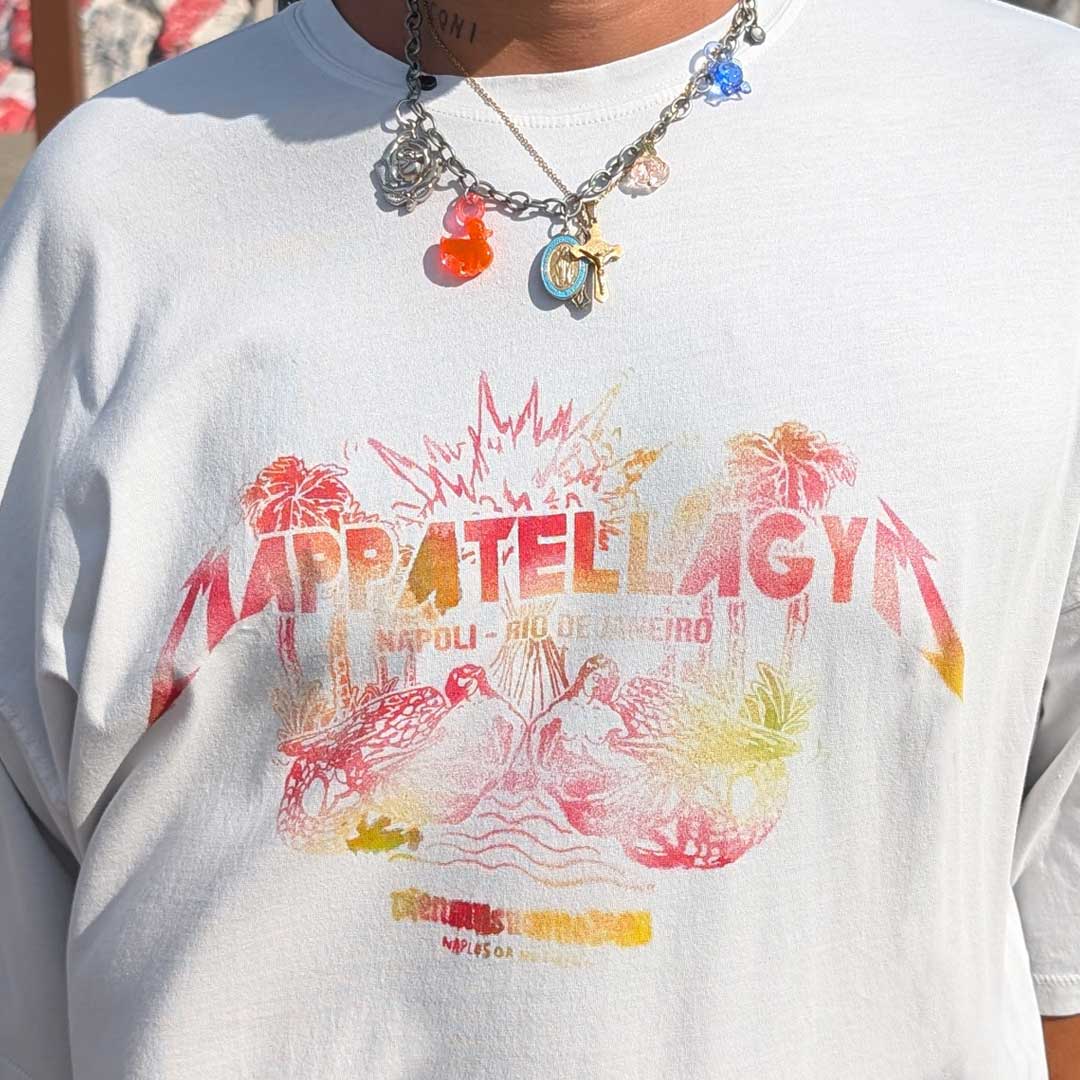 Le musiche, i colori, i profumi e le mille sfaccettature, vengono trasformate in palette cromatiche, simboli e narrazioni visive, evolvendosi fino a includere maglieria, jersey e capi in pelle.