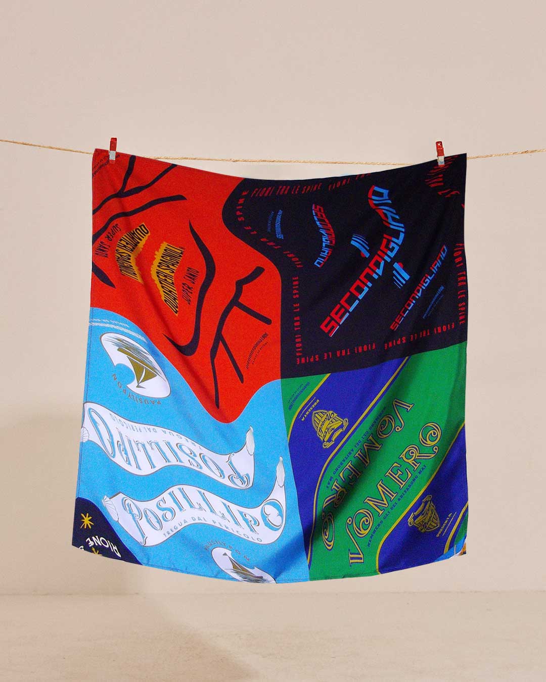 Bandana in twill di seta con liquify mix di quattro quartieri "Rione Sanità", "Parthenope", "Buvero"...