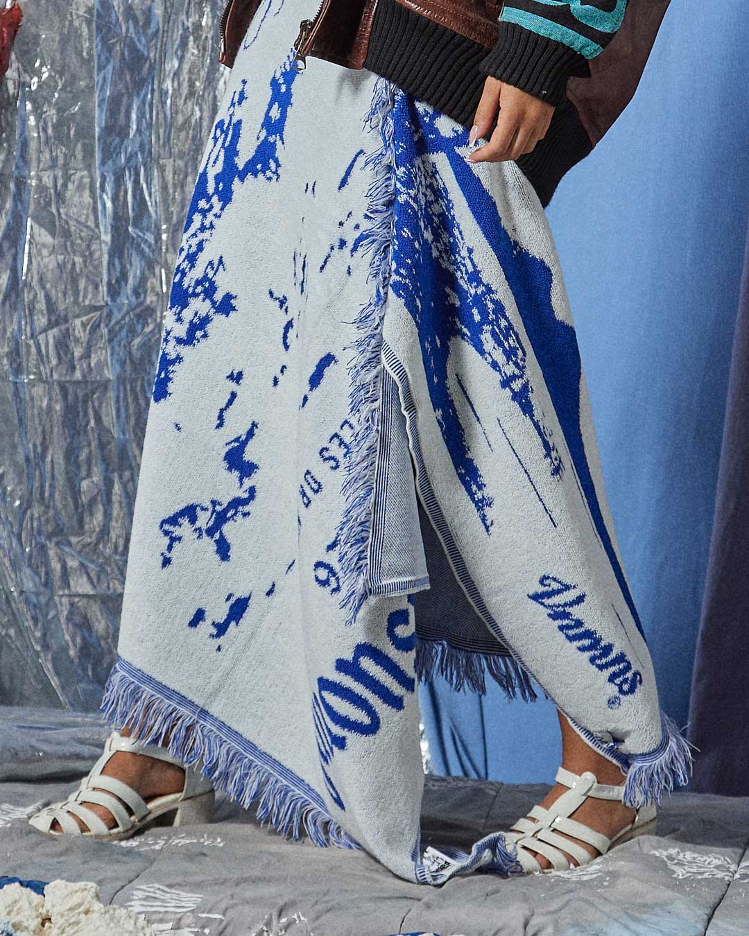 Telo in spugna bianco e blu, raffigurante una veduta di Napoli realizzato con la tecnica...