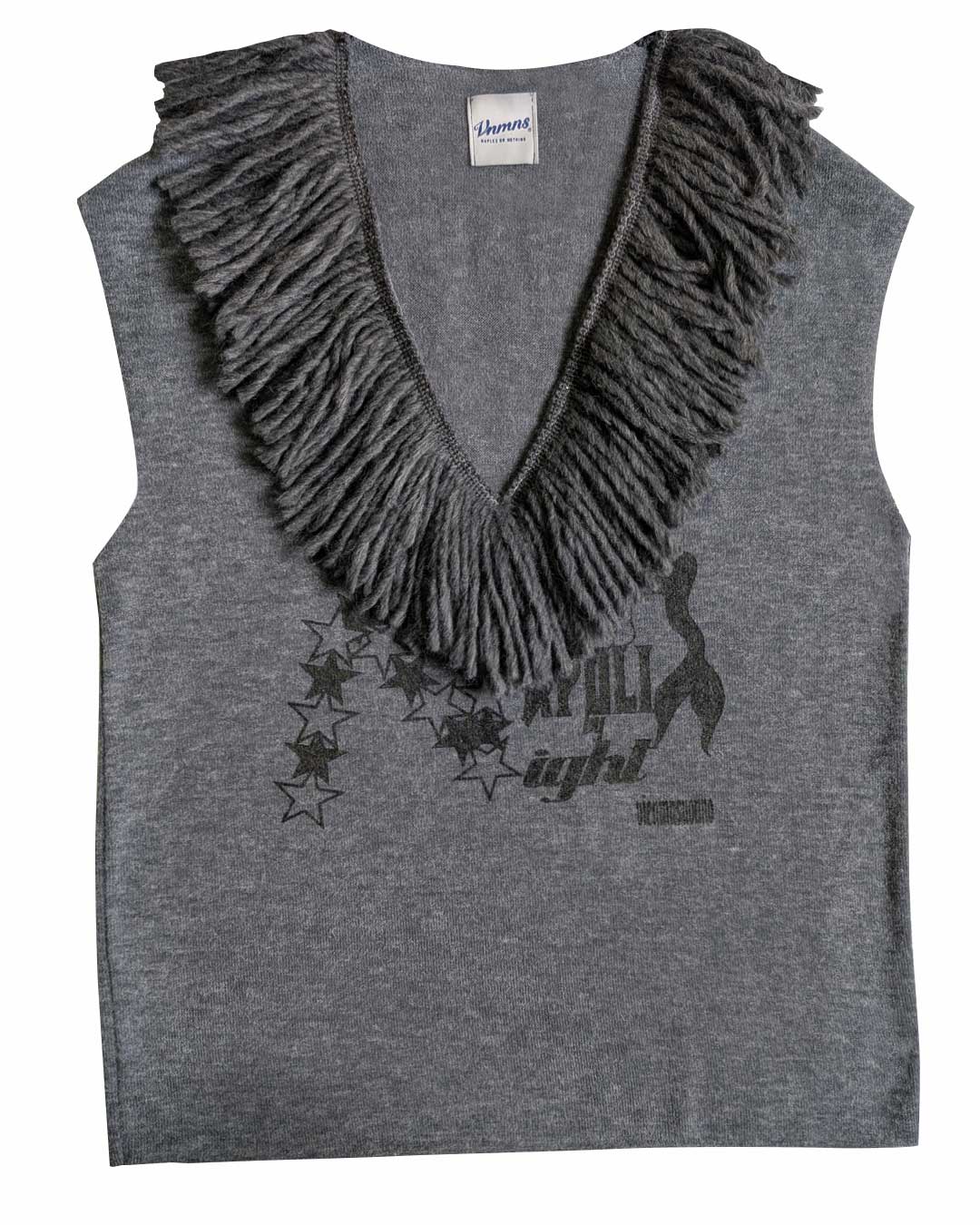 Gilet en mélange de laine grise avec impression sérigraphique "Napoli by night" en noir et...