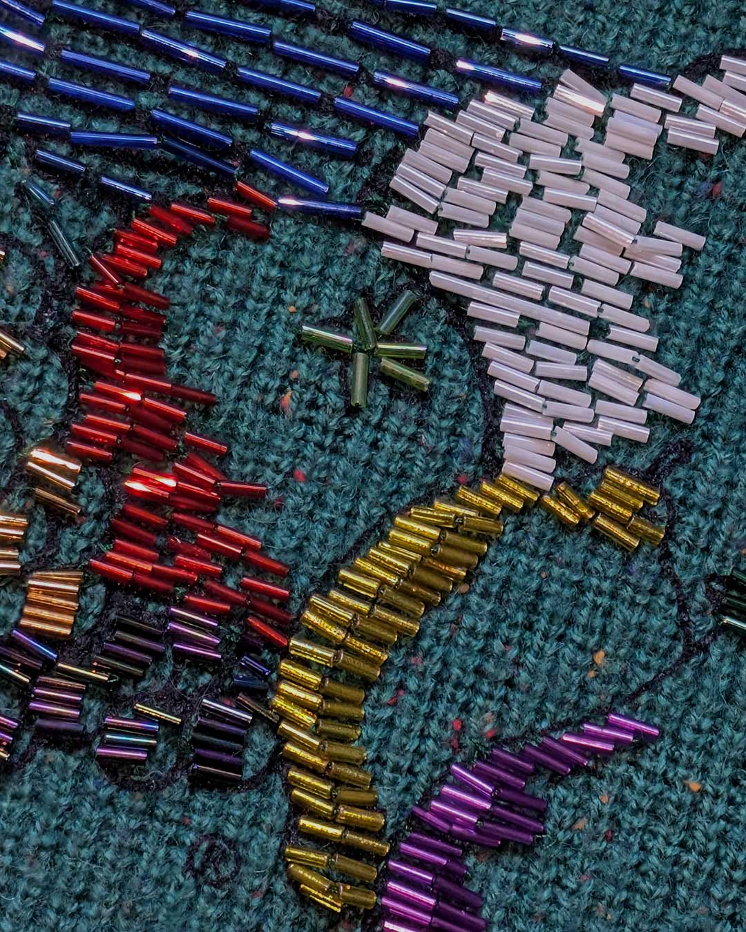 Débardeur en laine ivoire avec application de strass irisés sur le devant, représentant le golfe...