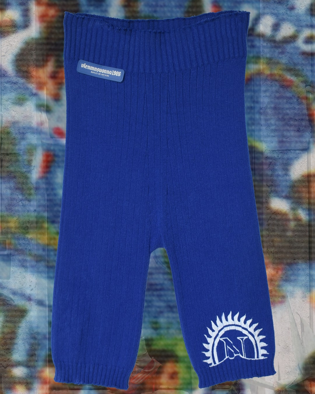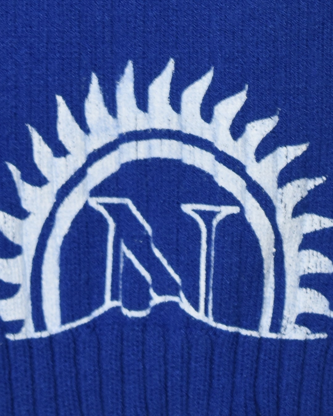 Biker a coste blu cobalto con stampa in serigrafia bianca che celebra la vittoria dello scudetto, patch gommata su un lato.