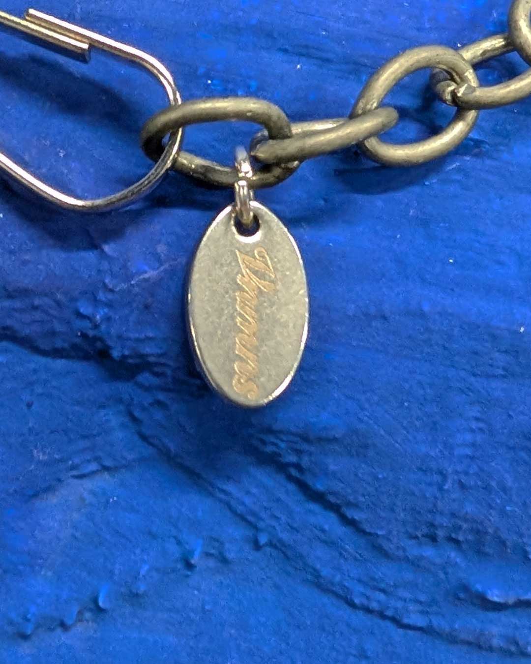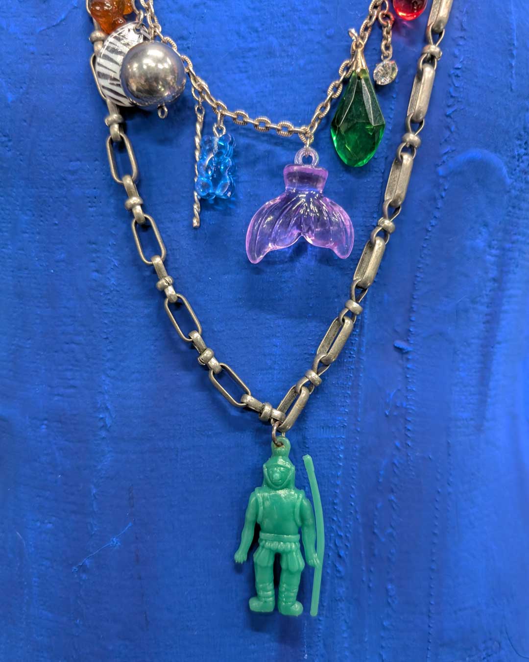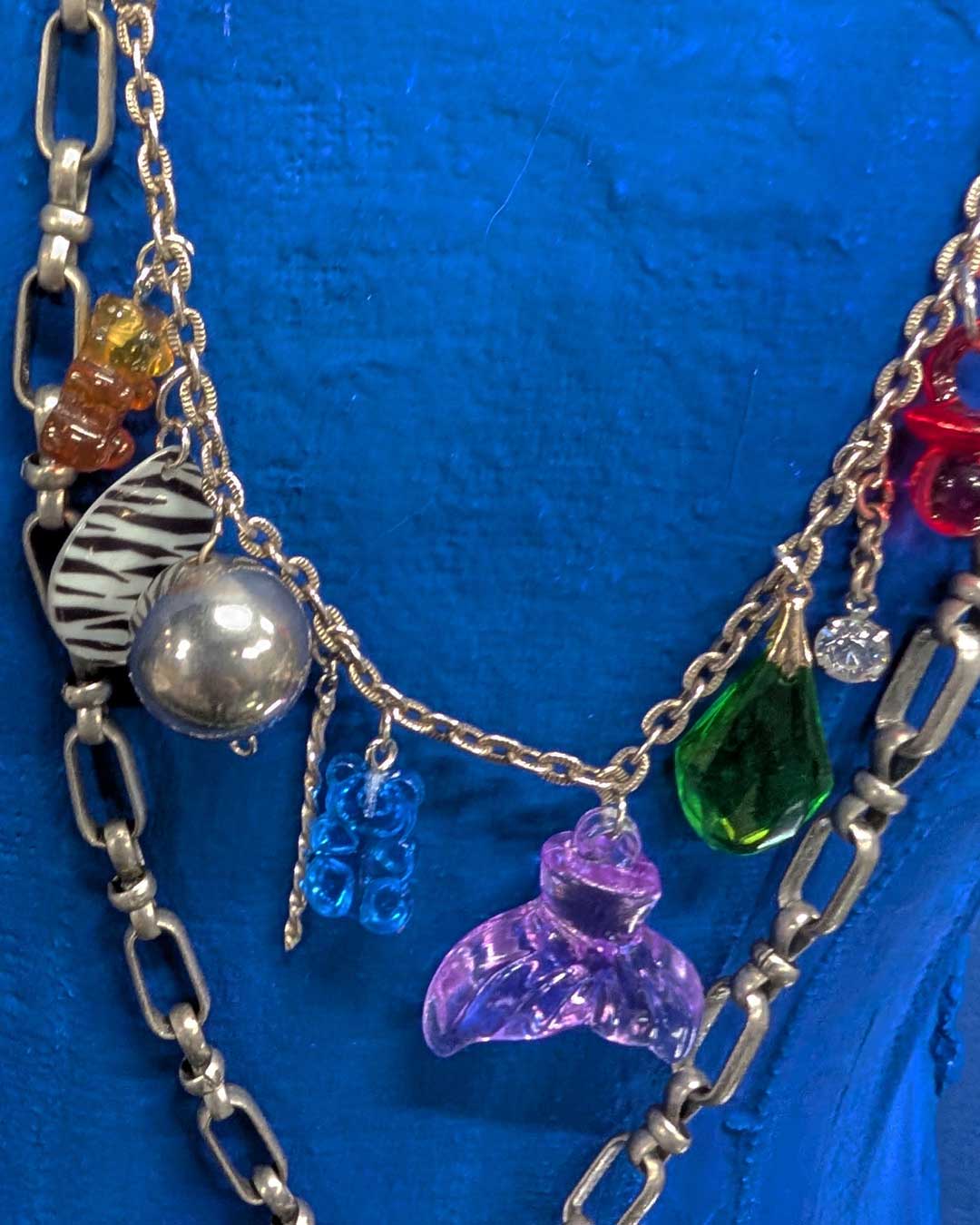 Collanina realizzata a mano con catene di maglie diverse tra loro e ciondoli con differente provenienza.