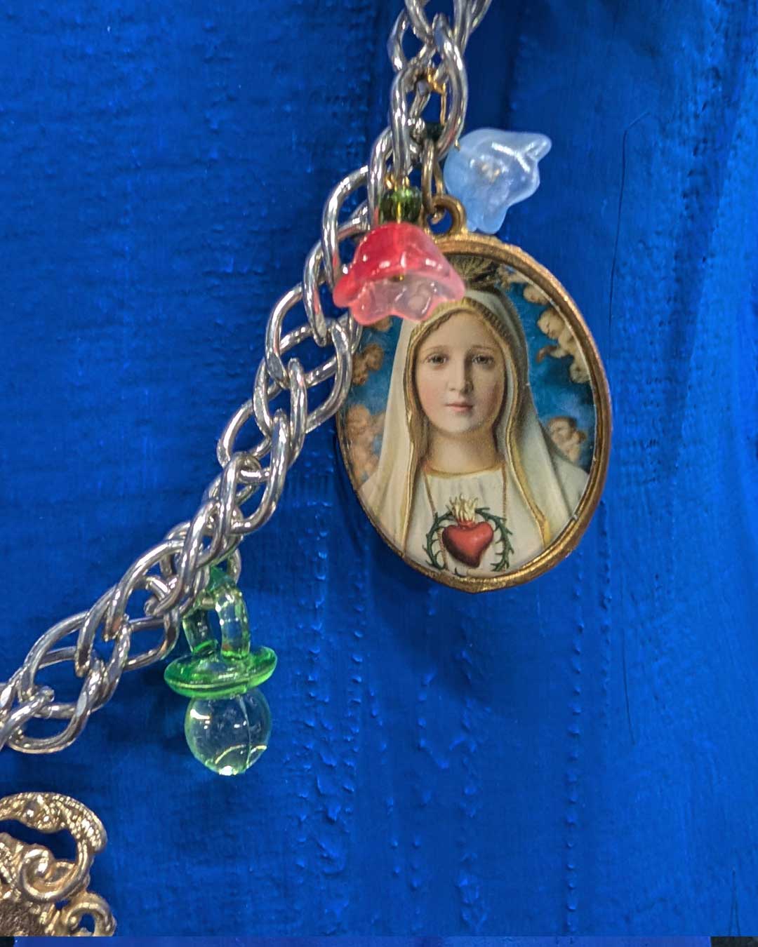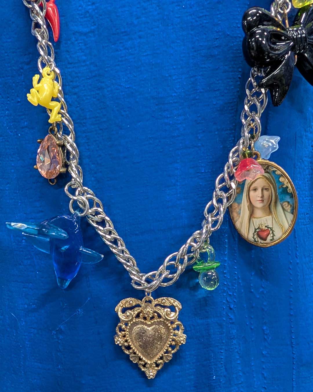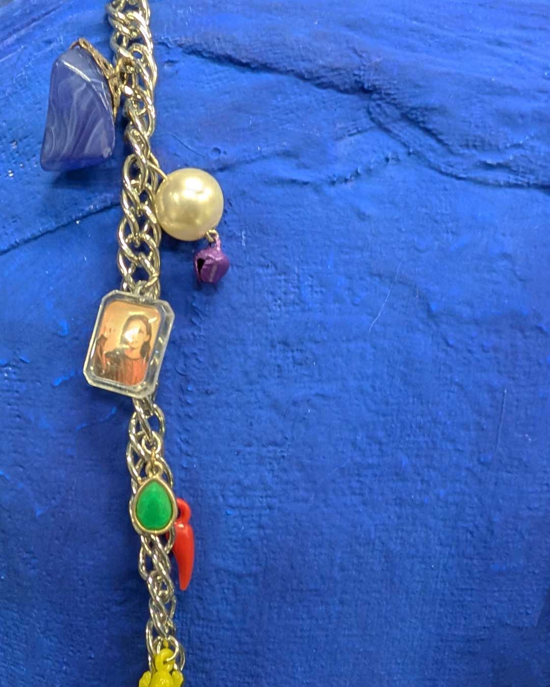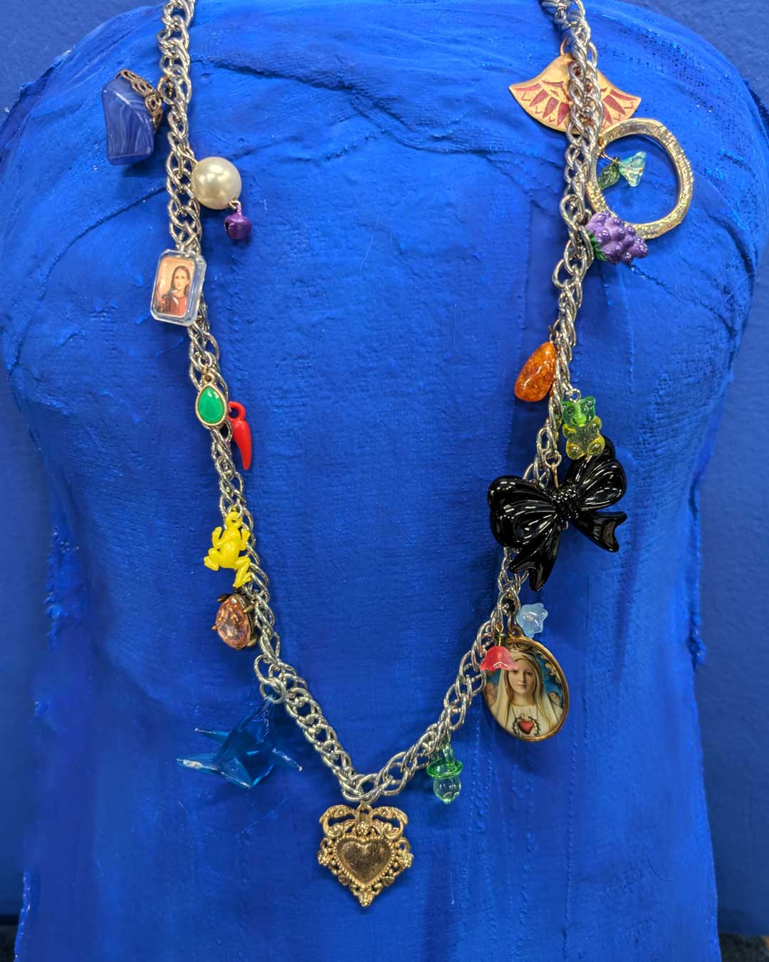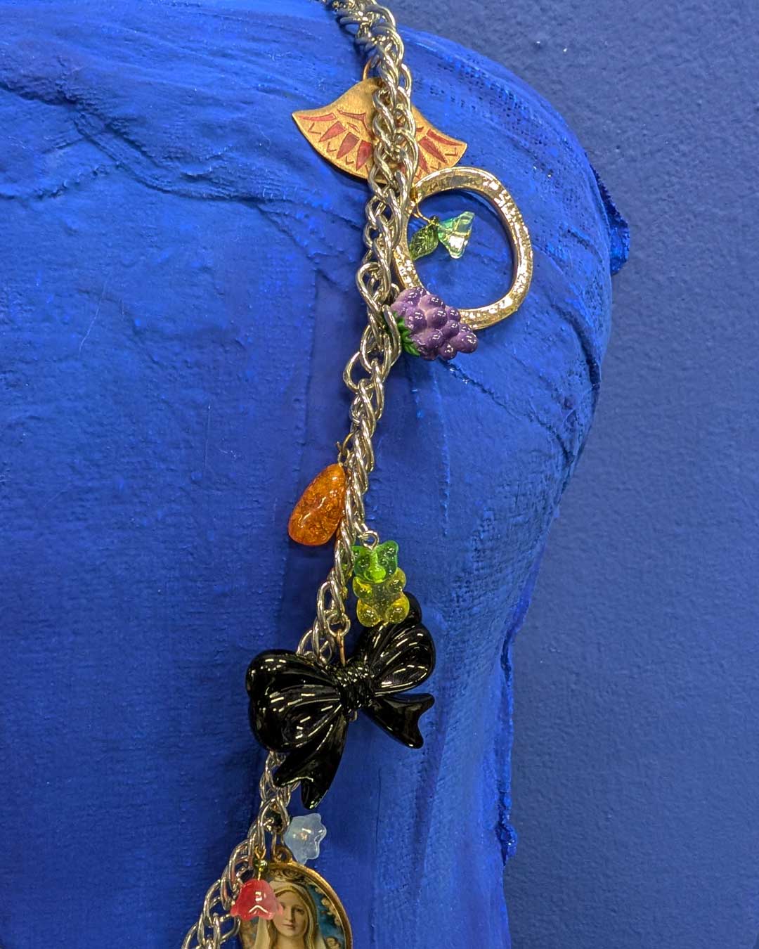 Collanina realizzata a mano con catene di maglie diverse tra loro e ciondoli con differente provenienza.