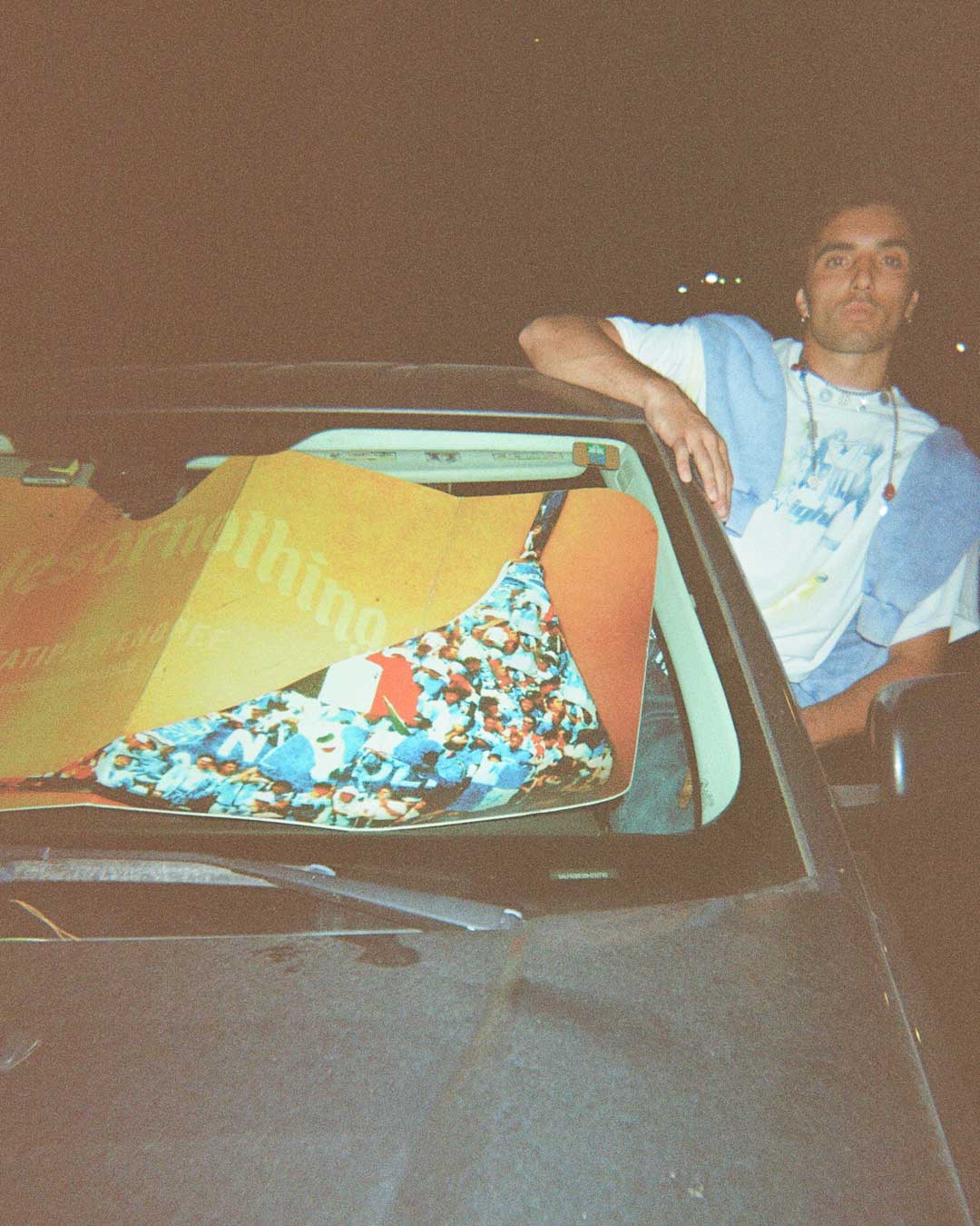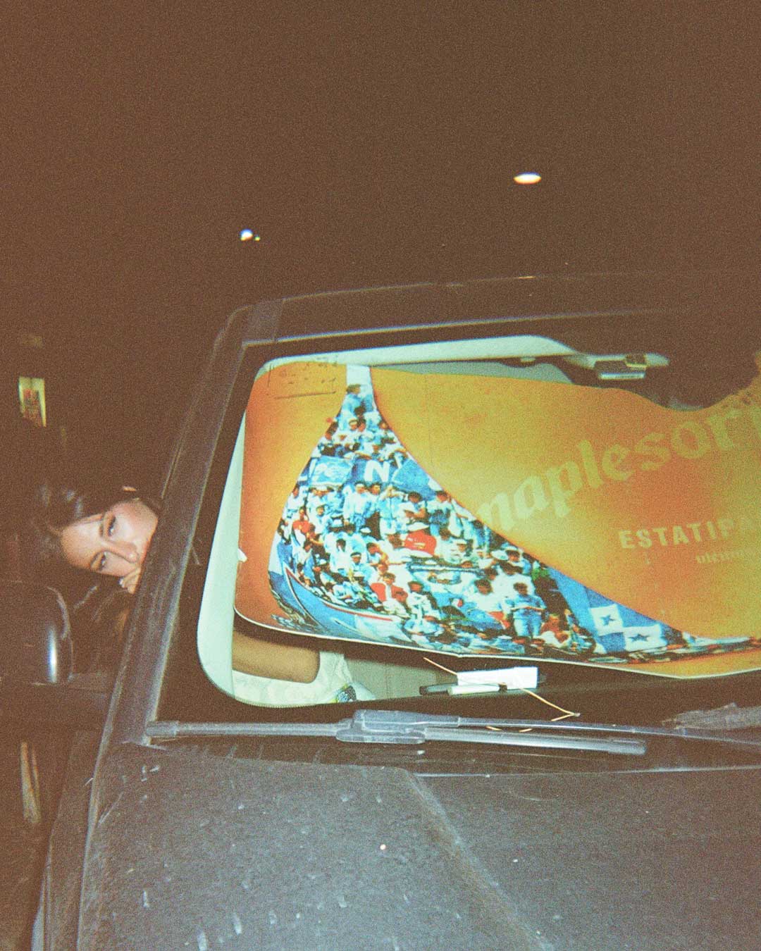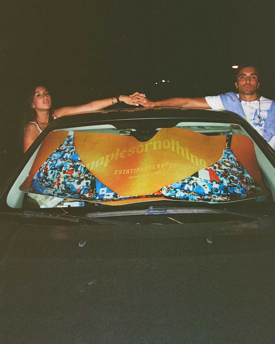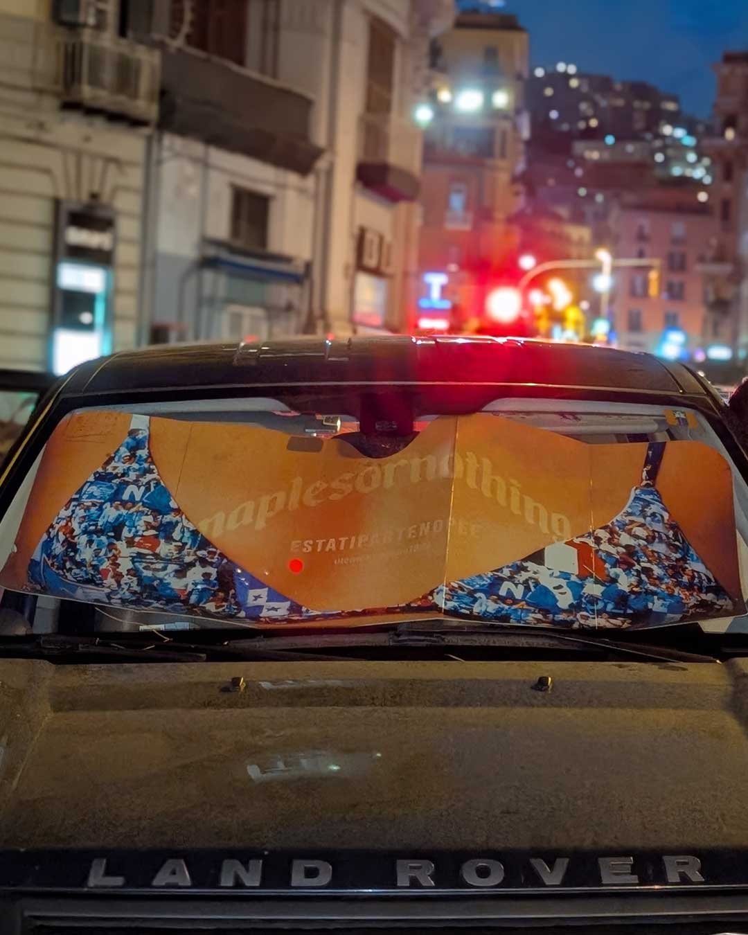 Parasole ironico e pop stampa fotografica full size che raffigura il décolleté di una ragazza con il bikini scudetto.