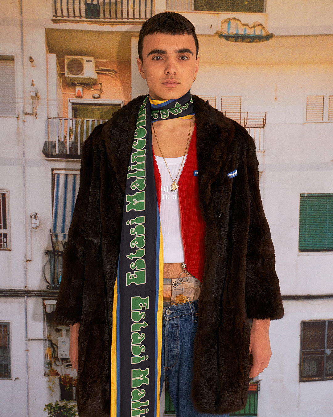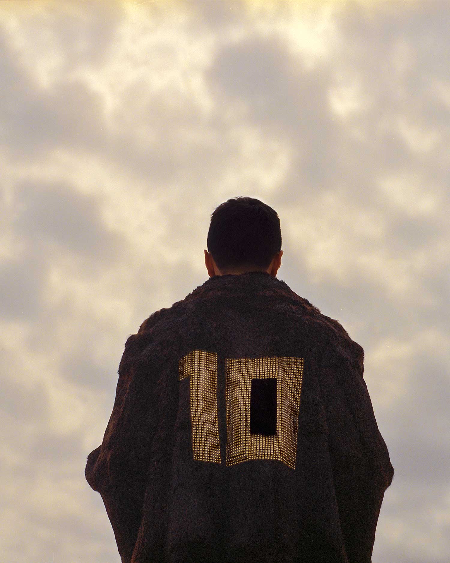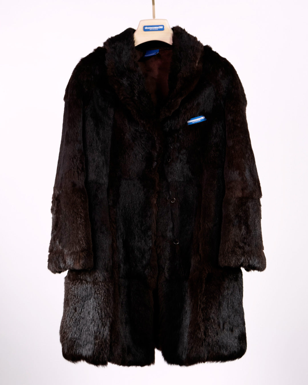Camillo indossa pelliccia scampanata vintage testa di moro con numero 10 sul retro in strass dorati. chiusura con gancetti, patch “Vienmnsuonno1926” gommata.