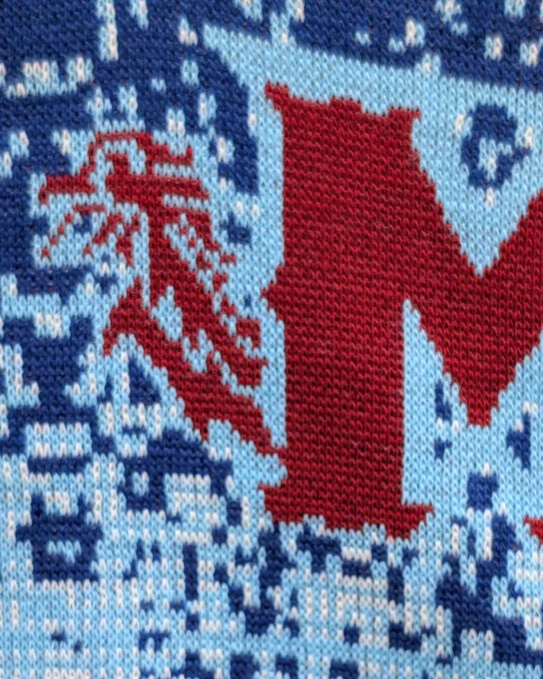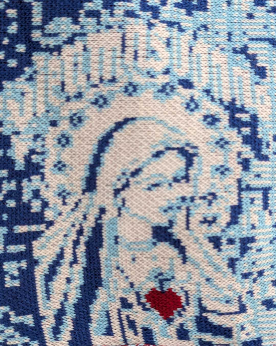 Sciarpa 100% acrilico, dimensioni 26x170cm. Frange di passamaneria lunghe 10 cm color azzurro e rosso