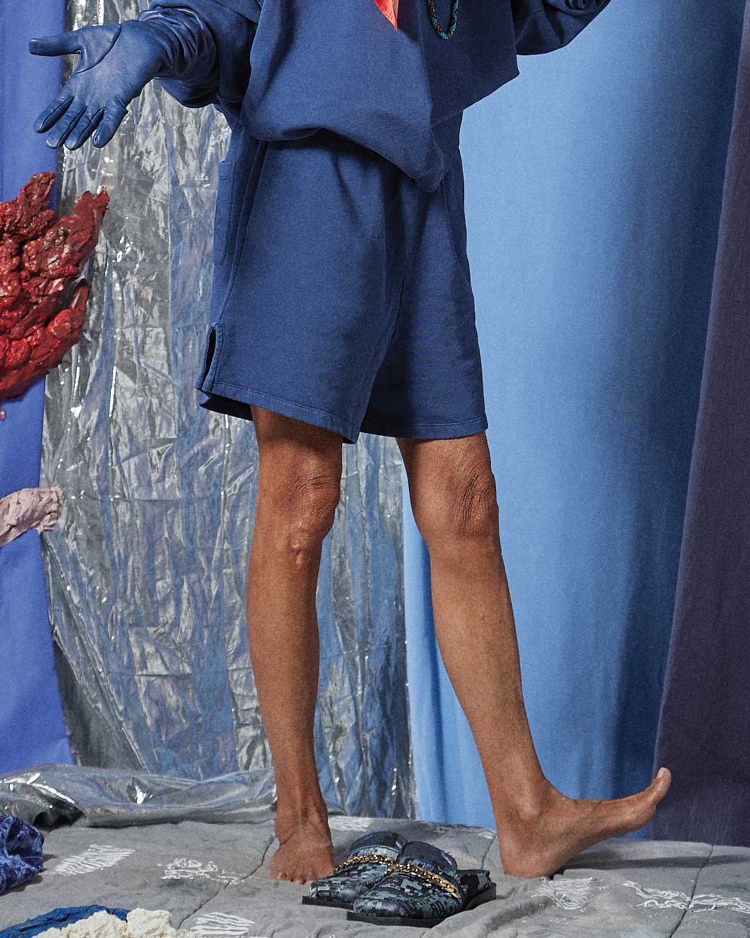 Short in felpa over con tasche laterali e spacchetti al fondo.