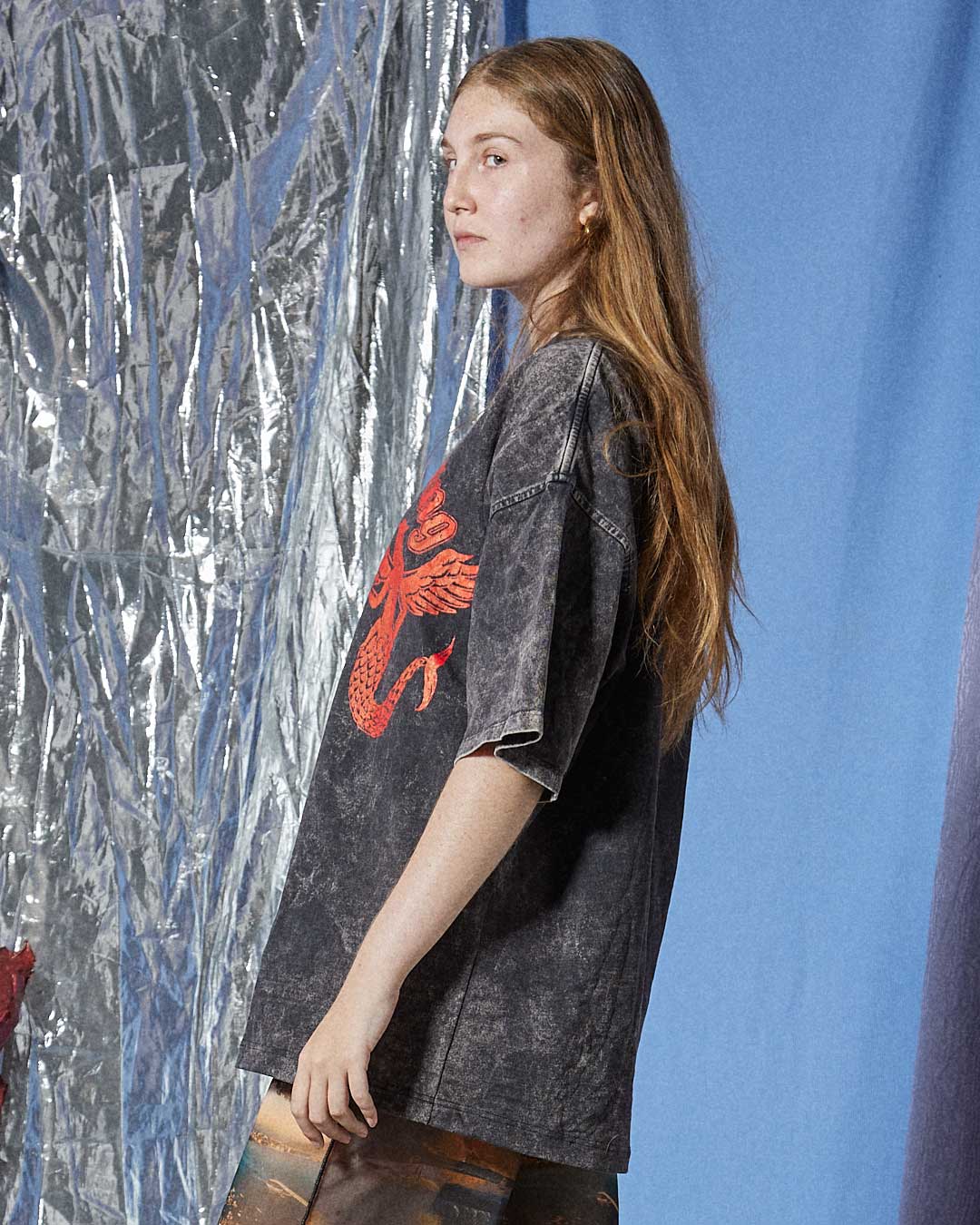 T-shirt, fit over, heavy cotton 230gr. faded color nero marmorizzato.