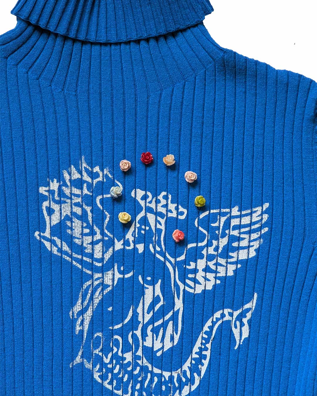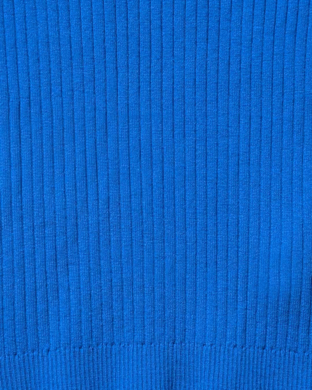 Turtleneck in maglia a coste colore azzurro brillante, con manica flare.